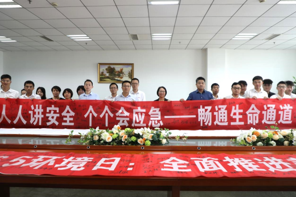 在管委會主任李朝暉帶領下,公司全體成員在“人人講安全,個個會應急--暢通生命通道”宣傳主題橫幅上鄭重地簽下自己的名字,以實際行動捍衛安全生產防線。