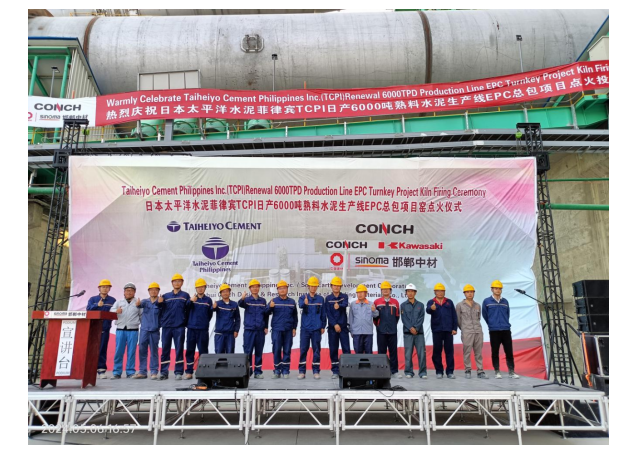 菲律賓當?shù)貢r間5月6日下午5時08分,由海創(chuàng)綠能下屬上海海螺川崎節(jié)能環(huán)保工程有限公司承擔設(shè)備成套的太平洋水泥菲律賓(TCPI)日產(chǎn)6000噸熟料水泥生產(chǎn)線回轉(zhuǎn)窯順利點火。上海海川公司平井隆副總經(jīng)理應(yīng)邀出席點火啟動儀式。